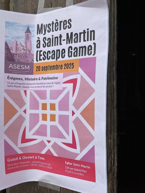 À l’occasion des Journées Européennes du Patrimoine, l’Association pour la Sauvegarde de l’Église Saint-Martin (ASESM), en partenariat avec la paroisse de Cormeilles-La-Frette, a proposé un escape game inédit au sein de l’église Saint-Martin.