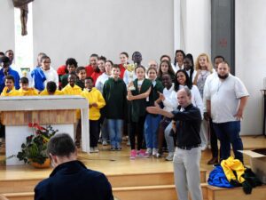Le repas tiré du sac, ponctué de desserts apportés par chacun, a prolongé cette fraternité autour de grandes tablées. L’après-midi a réuni petits et grands autour d’un grand jeu familial, avant la remise des sweats paroissiaux aux plus jeunes.